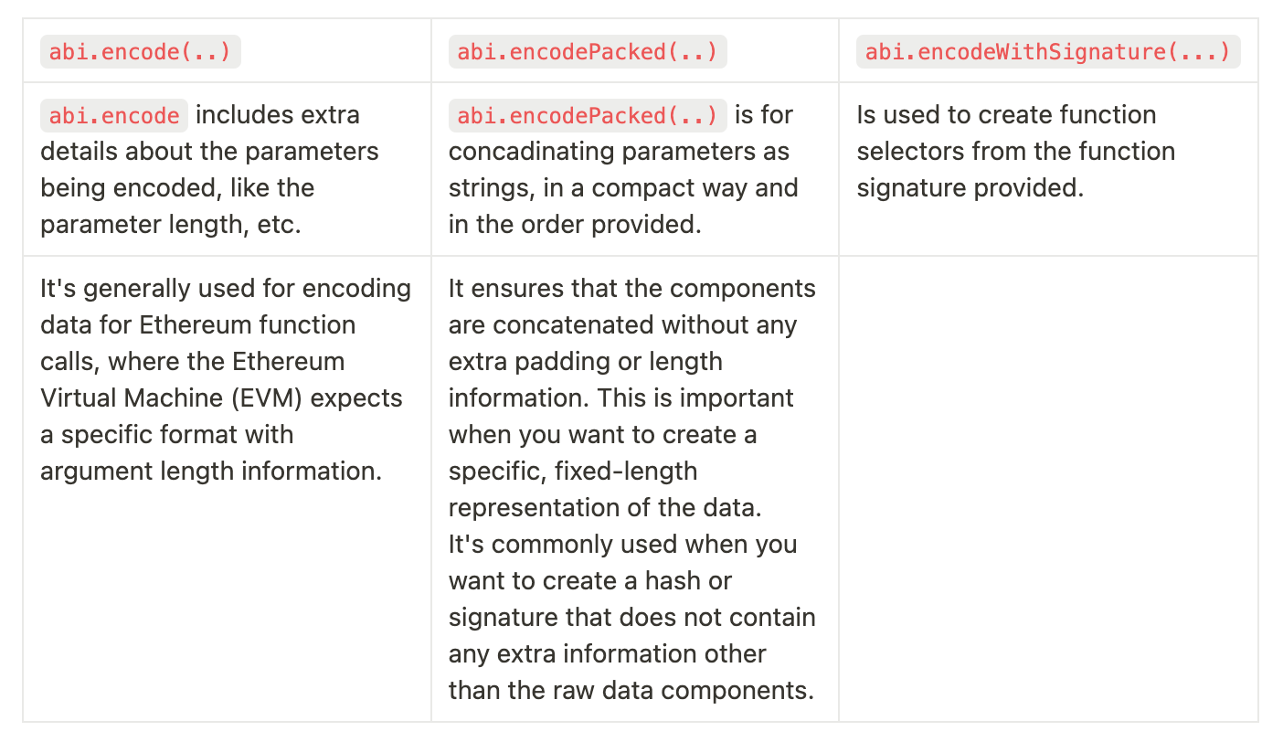 abi.encode(…)abi.encodePacked(…)abi.encodeWithSignature(…)